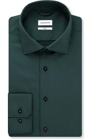 Seidensticker Linnen Overhemd olijfgroen, Effen