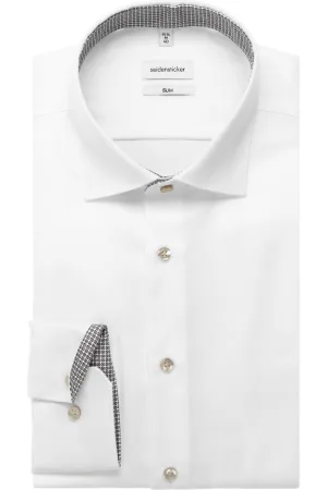 Seidensticker slim fit overhemd – off-white – Strijkvrij – Boord