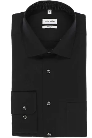 Seidensticker Regular Fit Overhemd zwart, Effen