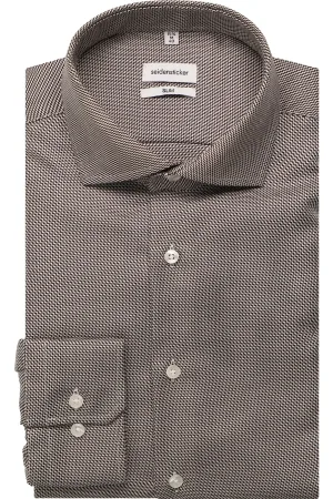Seidensticker Overhemd bruin, Gestructureerd
