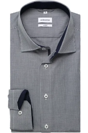 Seidensticker slim fit overhemd – donkerblauw (gestipt contrast) – Strijkvrij – Boord