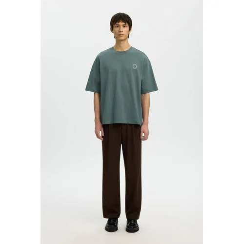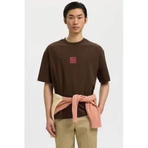 SELECTED HOMME relaxed T-shirt met backprint bruin