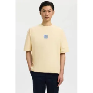 SELECTED HOMME relaxed T-shirt met backprint geel
