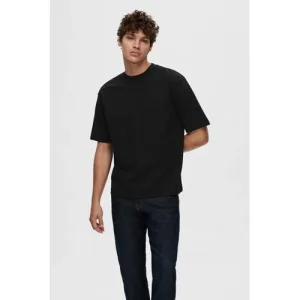 SELECTED HOMME loose fit T-shirt SLHLOOSEOSCAR zwart
