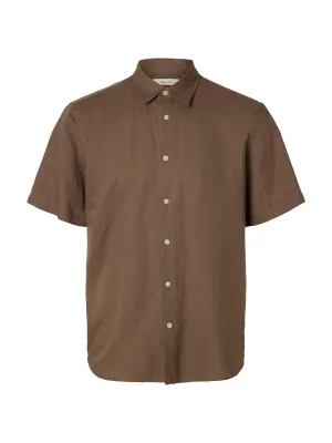 SELECTED Overhemd mokka / lichtlila
