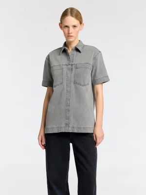 SELECTED Shirt ‘SLHATLAS’ lichtgrijs / wit