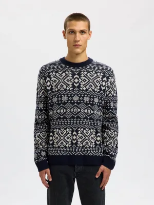 SELECTED Trui ‘SLFALMINA’ crème / nachtblauw