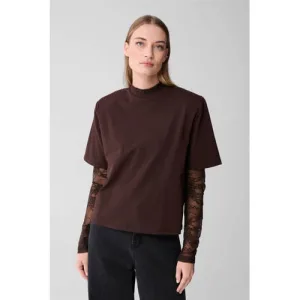 Shoeby kanten gebloemde top bruin