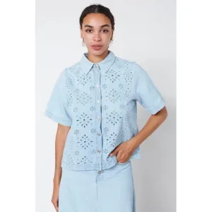 SISTERS POINT Blouse ‘GUFO’ lichtblauw / rood / wit