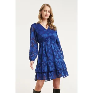 Smashed Lemon Blauwe jurk met bloemenstructuur en ruffle zoom |