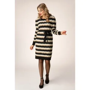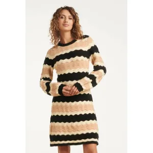 Joanne gebreide jurk in zwart en zand