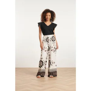 Smashed Lemon 24056 lang flowy broek met ornamentprint |