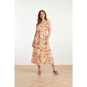 Smashed Lemon 25162 off white bladprint jurk met v-hals |