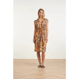Smashed Lemon 24455 zomerjurk met pofmouwenfel aztec print |