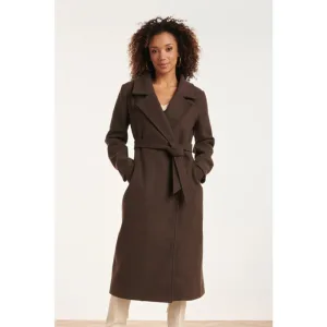 Smashed Lemon 24552 lange bruine jas met grote revers