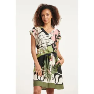 Smashed Lemon 25037 v-hals overlapped korte jurk met grafische dots, |