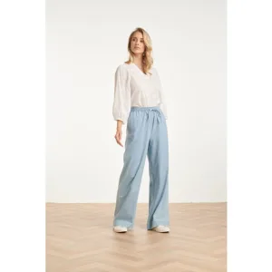 Smashed Lemon Lichtblauwe wide leg broek met koordsluiting |