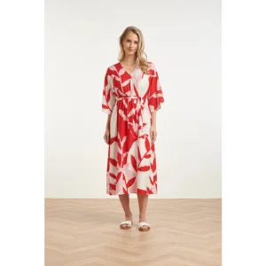 Smashed Lemon Maxi-jurk met rood en roze botanische print |