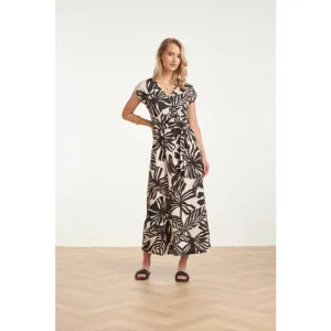 Smashed Lemon Wikkeleffect maxi-jurk met bladprint in zwart en ecru |