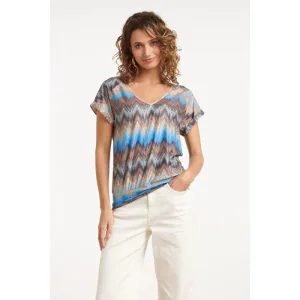 Smashed Lemon 25042 lichte maxi jurk met v-halsaztec print-nude tinten |