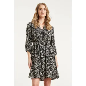 Smashed Lemon Zwarte jurk met beige paisley print en ruffle zoom |