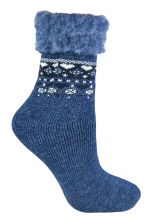 Wollen bedsokken voor dames met Fairisle-ontwerp – Grijs