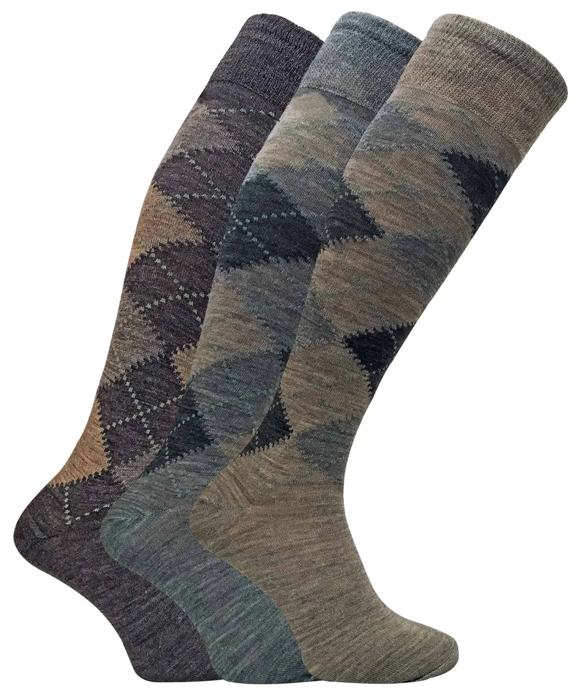 Set van 3 Argyle kniekousen van lamswol voor heren – Bruin