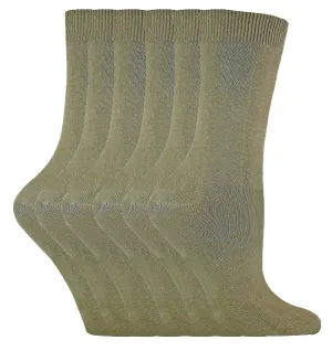 Set van 6 effen, casual katoenen damessokken – PL30 Kaki