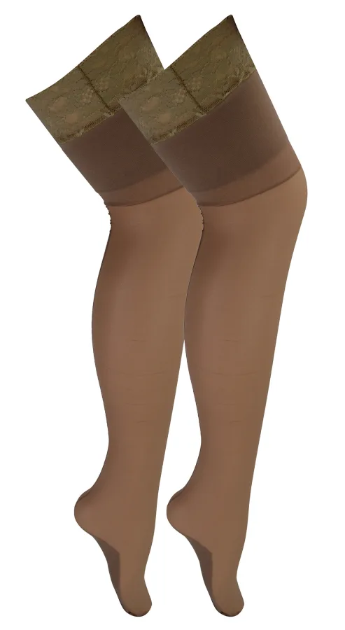 2 paar dameskousen met kanten bovenkant – Naakt / Naakt