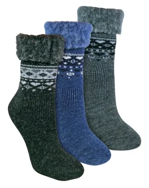 Sock Snob – 3 Paar Dames Omslag Bovenwol Bed Sokken voor Winter | Warme Sokken – Zwart / Houtskool / Denim