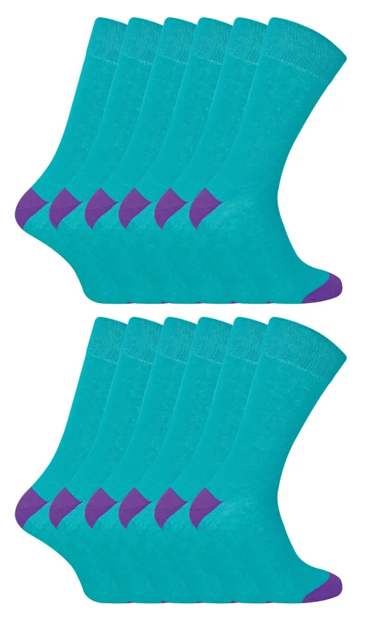 12 Paar Multipack Heren Zwarte Katoenen Sokken | Sock Snob | Ademend Crew Sokken met Verstevigde Hiel en Troffel – Blauwgroen