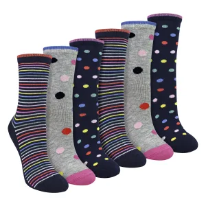 6 Paar Dames Sokken met Stippen en Strepen – Zachte Katoenen Casual Sokken