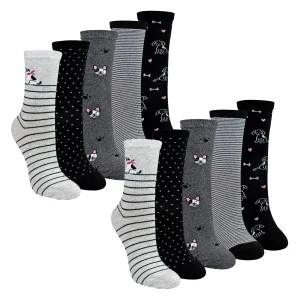 10 Paar Dames Sokken met Hondenpatroon – Zachte Katoenen Sokken met Leuk Hondenontwerp