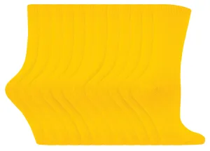 12 paar kleurrijke effen katoenrijke damessokken – Geel