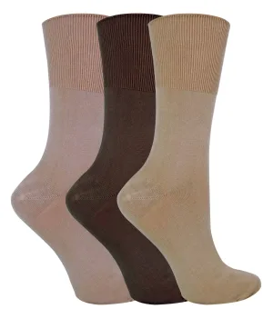 Set van 3 sokken zonder elastiek bamboesokken met wijde bovenkant voor dames – Bruin
