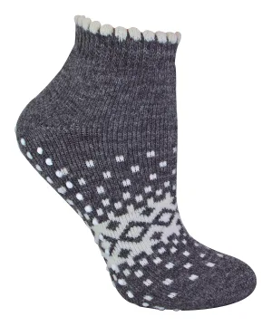 Thermische laag uitgesneden wollen antislip pantoffelsokken voor dames – Houtskool