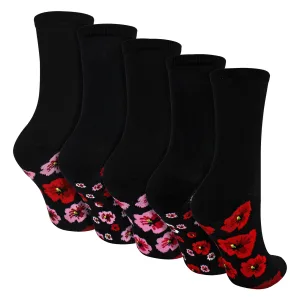 5 Paar Dames Poppy Voetbed Sokken – Zachte Katoenrijke Bloemmotief Sokken voor Elke Dag