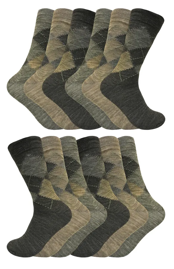 12 paar multiverpakking Argyle lamswollen herensokken – Bruin