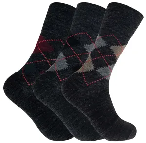Set van 3 Argyle kniekousen van lamswol voor heren – Grijs