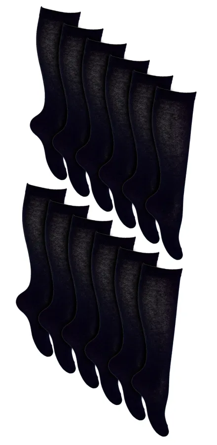 12 paar ademende katoenen kniekousen voor meisjes – Zwart