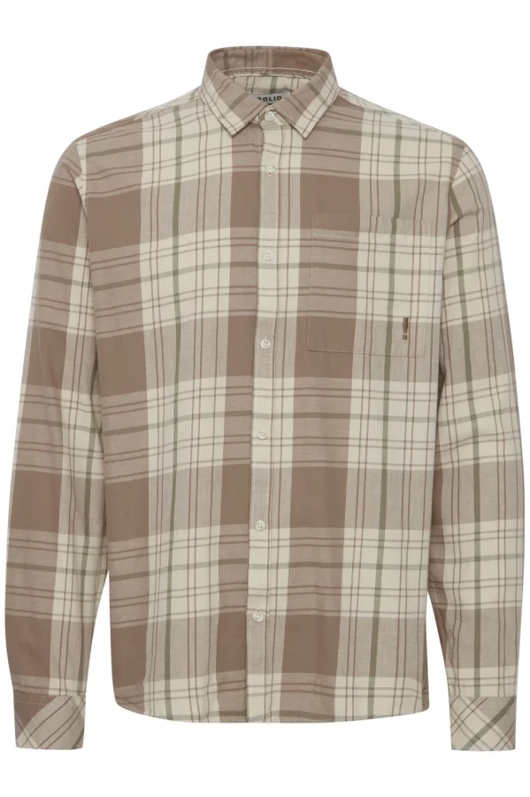 !Solid Overhemd ‘Nab’ sand / olijfgroen