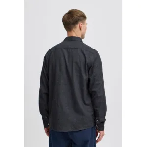 Solid gemêleerd regular fit overhemd zwart