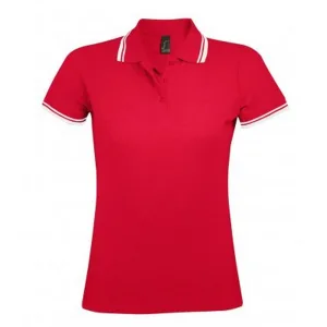 SOLS Dames/dames Pasadena getipt korte mouw Pique Polo Shirt (Rood/Wit)