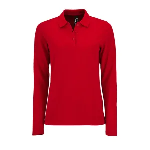 SOLS Dames/dames Perfecte Lange Mouw Pique Polo Shirt (Rood)