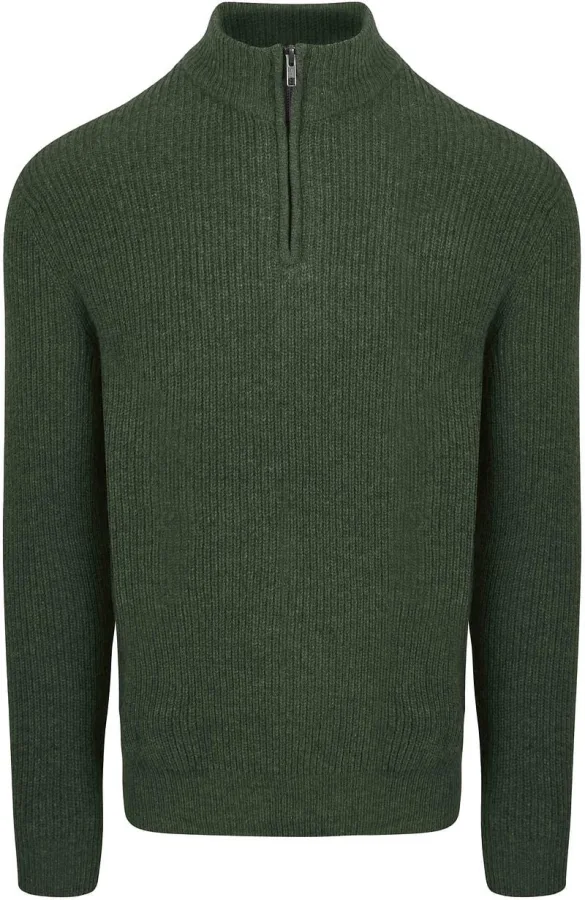 Steppin’ Out Half Zip Trui Lamswol Olijfgroen