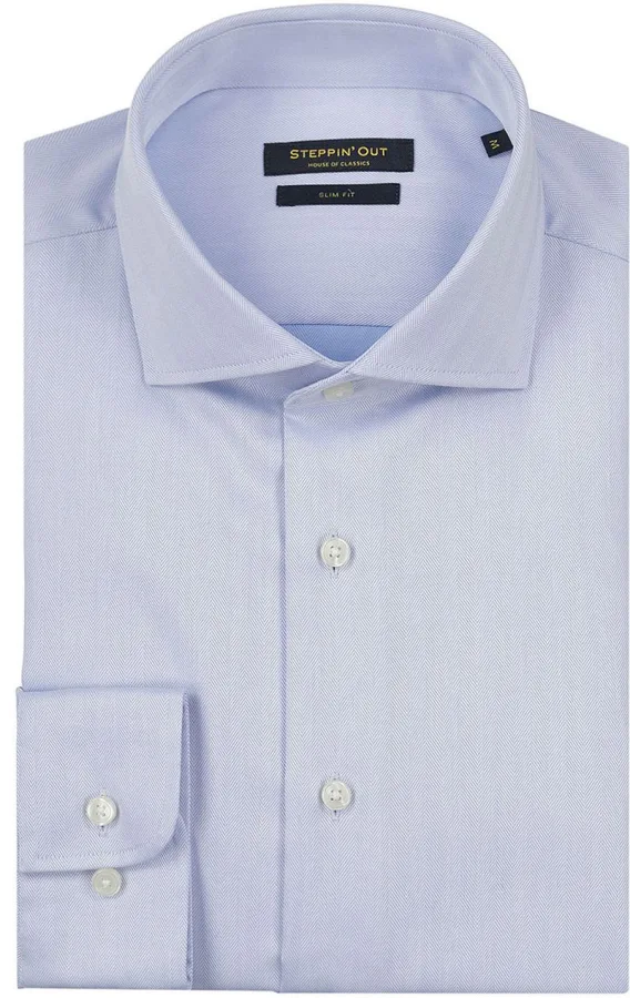 Steppin’ Out Overhemd Slim-Fit Herringbone Lichtblauw