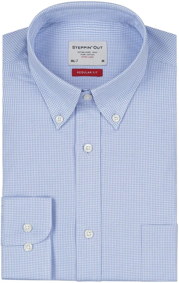 Steppin’ Out Overhemd Extra Lange Mouw Ruit Lichtblauw