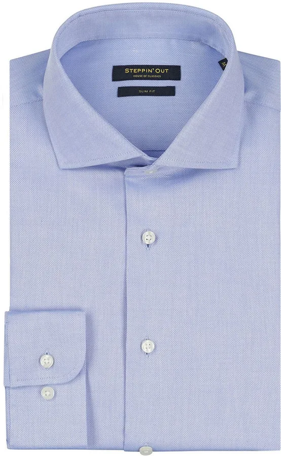 Steppin’ Out Overhemd Slim-Fit Dobby Lichtblauw