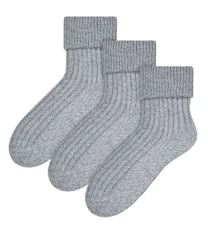 Steven – 3 Paar Dames Wol Bed Sokken | Luxe Lichtgewicht Warme Lounge Sokken – Lichtgrijs