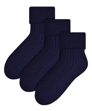 Steven – 3 Paar Dames Wol Bed Sokken | Luxe Lichtgewicht Warme Lounge Sokken – Marine